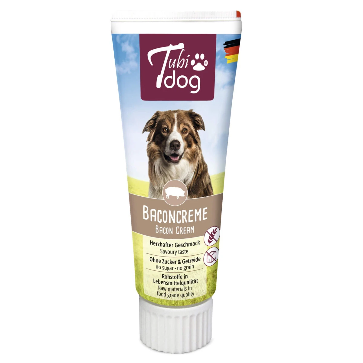 Hunde lieben Bacon! Deswegen gibt es jetzt die Baconcreme von Tubidog für Hunde in der praktischen Tube – ideal für das Hundetraining, die Hundeschule oder als Belohnung zwischendurch. Dank der praktischen Tube bleibt Ihre Tasche sauber. Außerdem ist Tubidog auch perfekt zur Verabreichung unliebsamer Medikamente, egal ob Tabletten oder Tropfen. Zusammen mit der Tubidog Baconcreme nimmt der Hund Medikamente auf, ohne es zu merken.